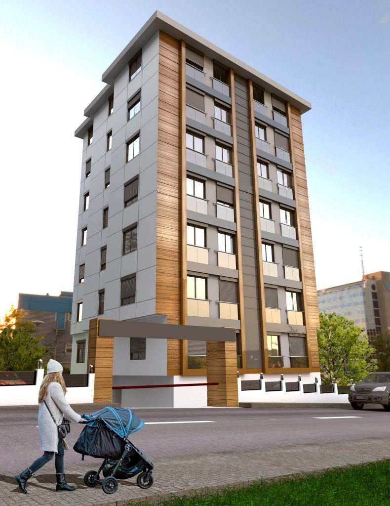 Projenin tamamı 570 m² arazi üzerine kurulan 14 adet daireden ve kapalı otoparktan oluşan konut bir yapıdır.
