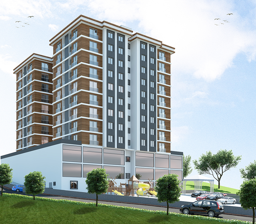 Projenin tamamı 3.420 m2 arazi üzerine kurulan 68 adet daire, 3 dükkan ve kapalı otoparktan oluşan konut + ticari bir yapıdır.